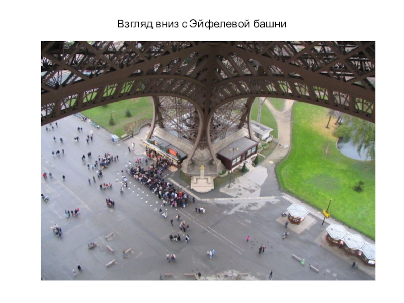 Слайд 18Взгляд вниз с Эйфелевой башни