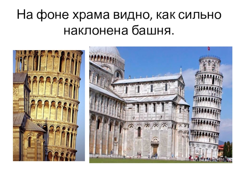 Слайд 20На фоне храма видно, как сильно наклонена башня.