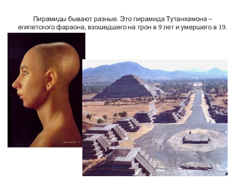 Слайд 10Пирамиды бывают разные. Это пирамида Тутанхамона – египетского фараона, взошедшего на