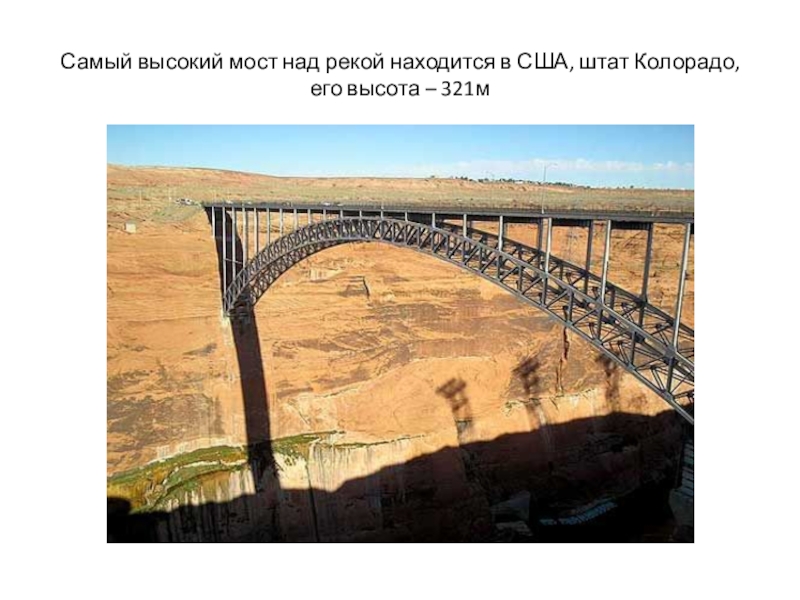 Слайд 27Самый высокий мост над рекой находится в США, штат Колорадо, его