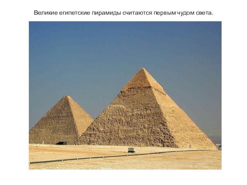 Слайд 8Великие египетские пирамиды считаются первым чудом света.