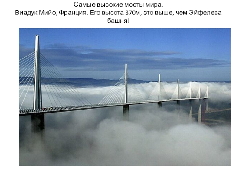 Слайд 24Самые высокие мосты мира. Виадук Мийо, Франция. Его высота 370м, это выше,