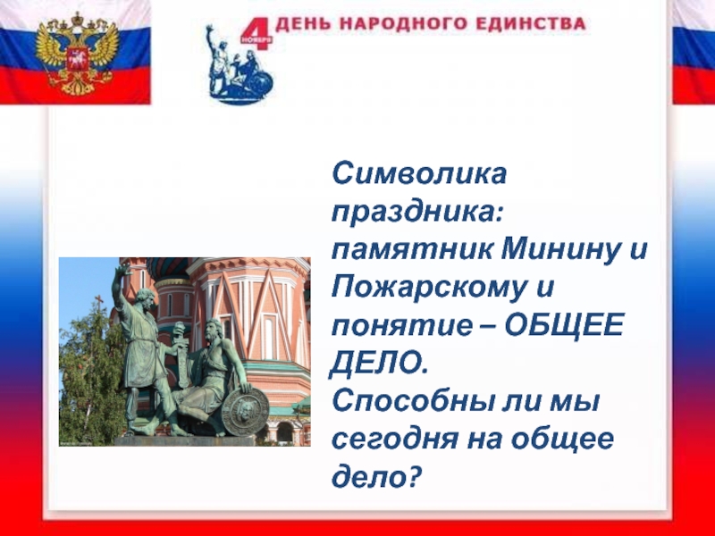Символика праздника: памятник Минину и Пожарскому и понятие – ОБЩЕЕ ДЕЛО. Способны ли мы сегодня на общее