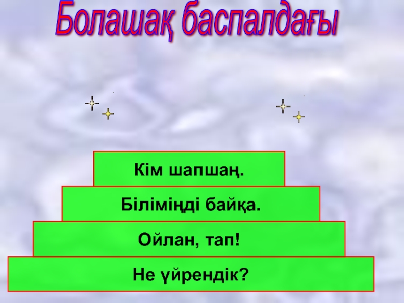 Болашақ баспалдағыНе үйрендік?Ойлан, тап!Біліміңді байқа.