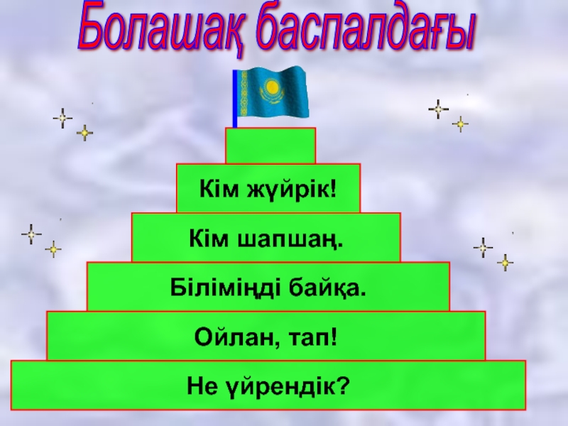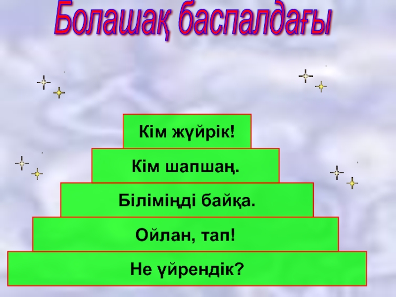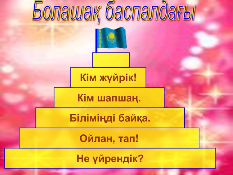 Болашақ баспалдағыНе үйрендік?Ойлан, тап!Біліміңді байқа.Кім шапшаң.Кім жүйрік!