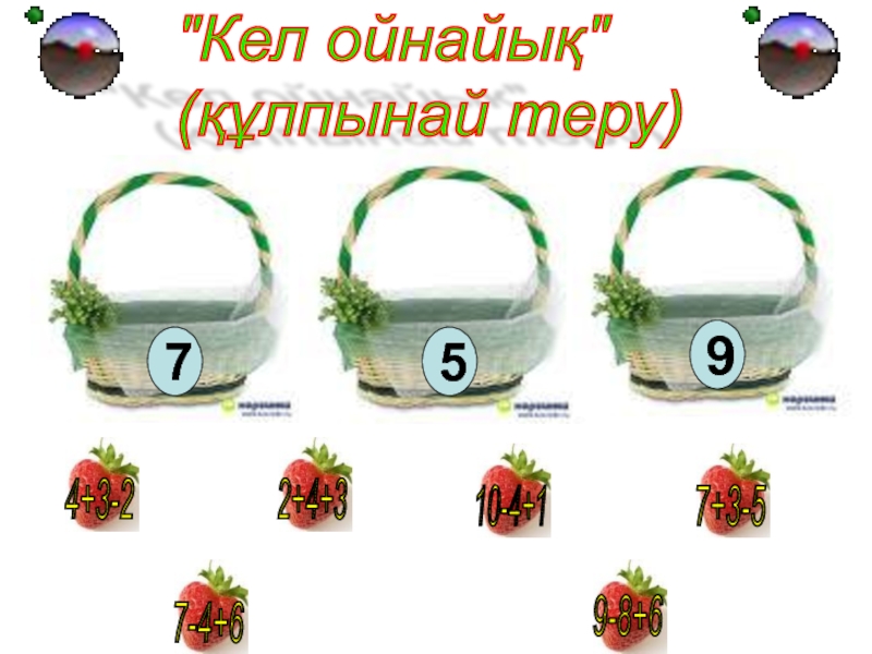 Слайд 15"Кел ойнайық" (құлпынай теру)