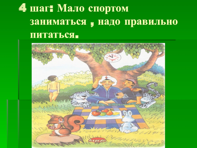 Слайд 8 4 шаг: Мало спортом заниматься , надо правильно питаться.
