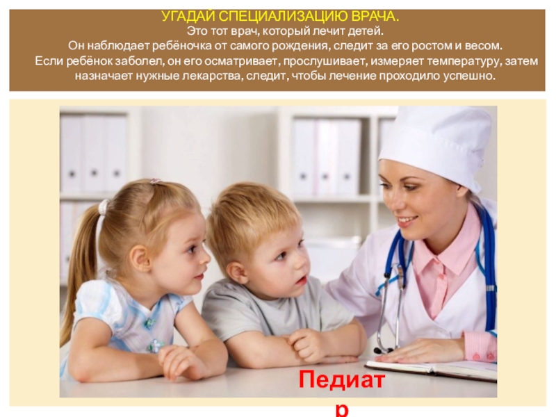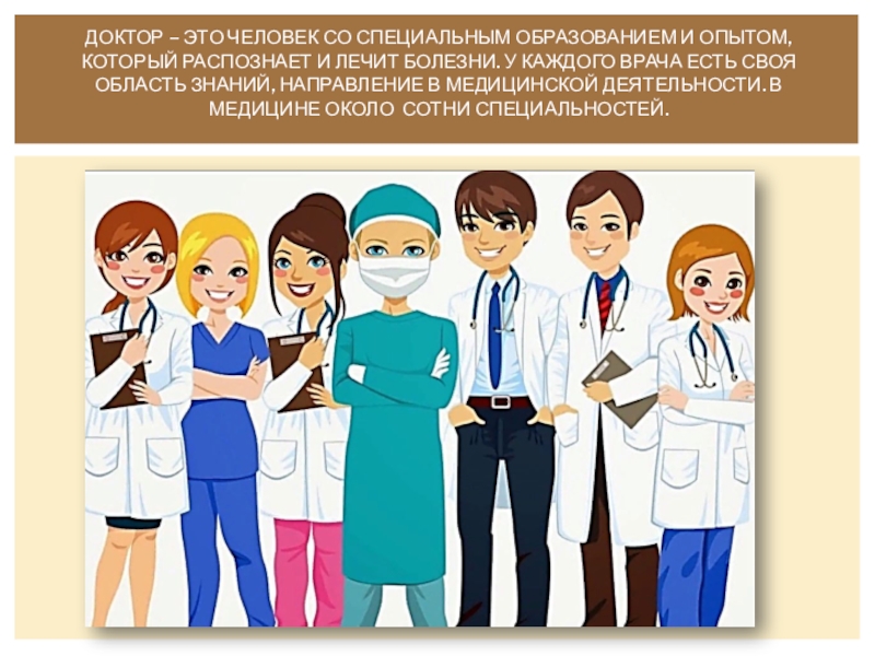 Это тоже врач, только врач необычный. Его главная задача – это осмотр животных, назначение им лечения и необходимых прививок. Человек этой профессии должен быть очень добрым и любить животных, ведь чтобы животное позволило ему себя лечить, оно должно чувствовать, что человек не хочет причинить ему зла.