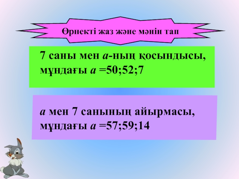 а мен 7 санының айырмасы, мұндағы а =57;59;14