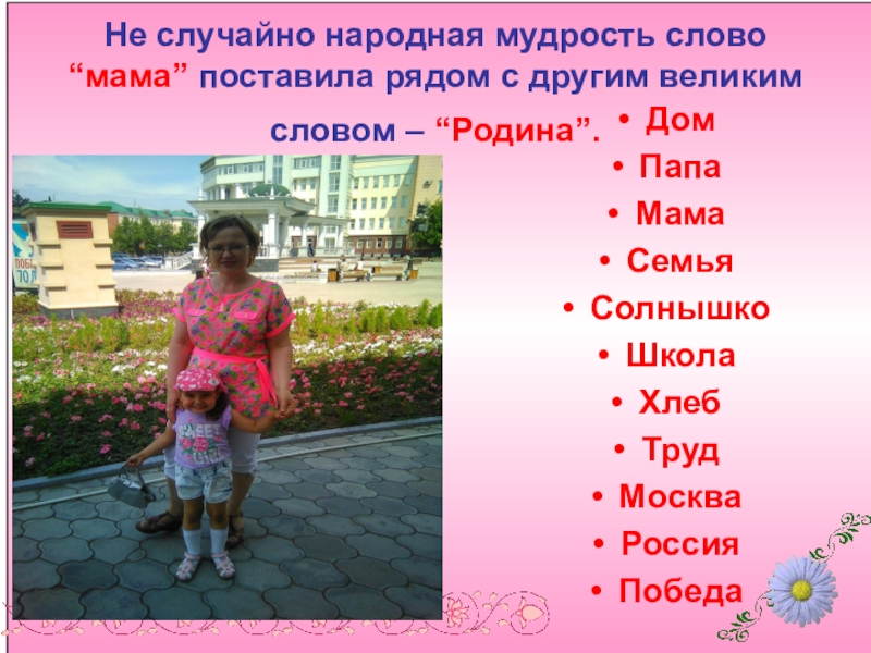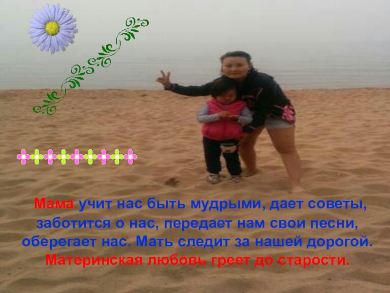 Мама, мамочка ььб! Сколько тепла таит это слово! Материнская любовь способна греть нас всегда, потому что дети – самое дорогое для матери. Мама – первый учитель и друг, она всегда поймет, утешит, поможет!