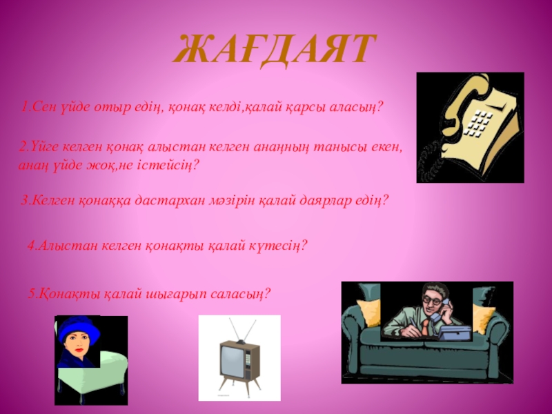1.Сен үйде отыр едің, қонақ келді,қалай қарсы аласың?