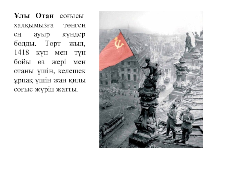 Слайд 11Ұлы Отан соғысы халқымызға төнген ең ауыр күндер болды. Төрт жыл,