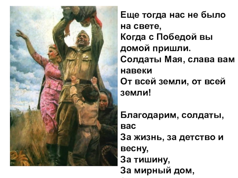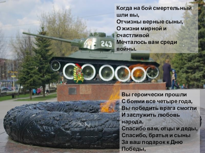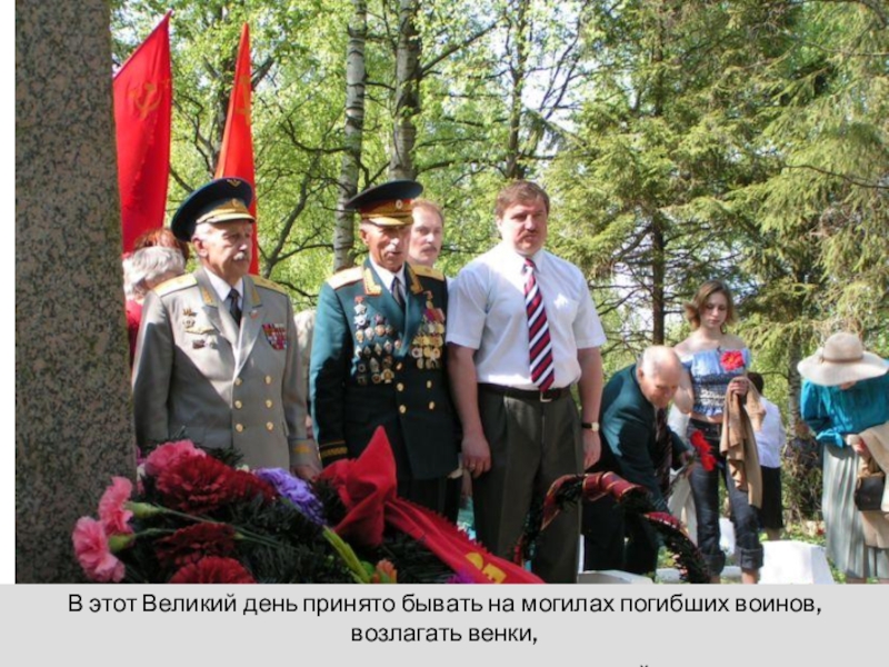 Слайд 9В этот Великий день принято бывать на могилах погибших воинов, возлагать