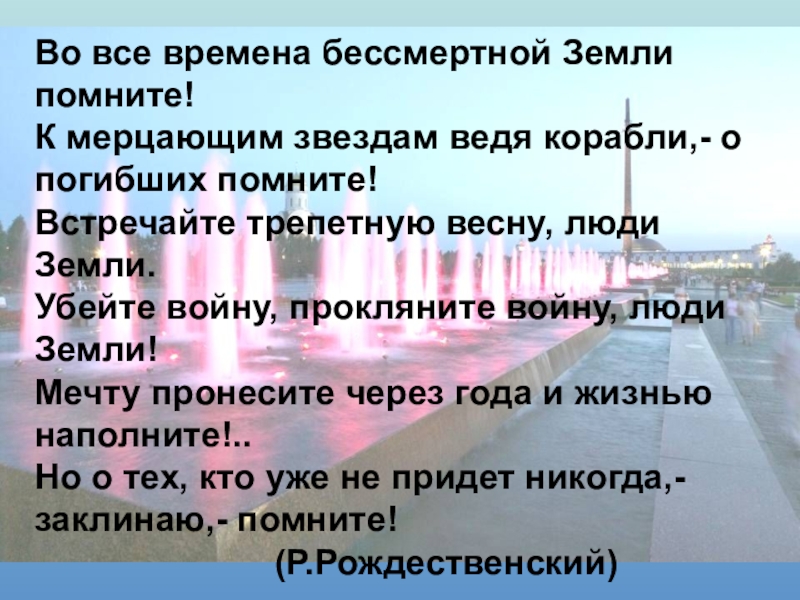 Но о тех, кто уже не придет никогда,- заклинаю,- помните!