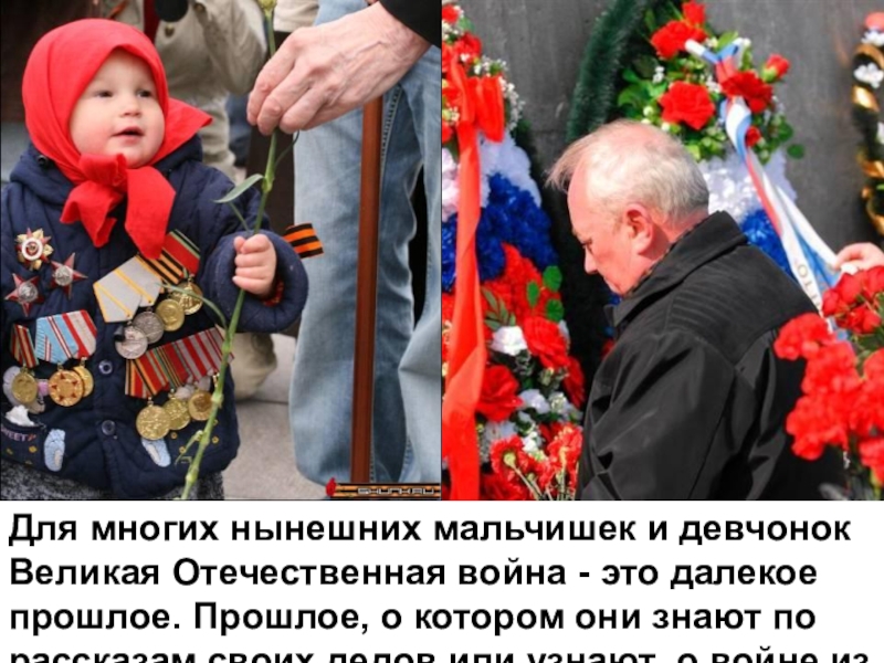 Слайд 15Для многих нынешних мальчишек и девчонок Великая Отечественная война - это