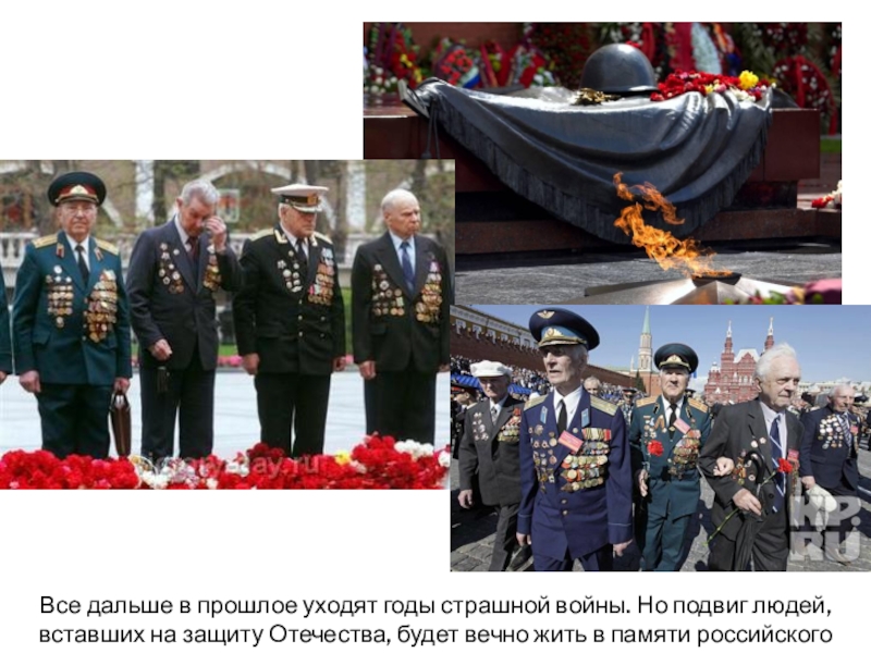 Слайд 11Все дальше в прошлое уходят годы страшной войны. Но подвиг людей,