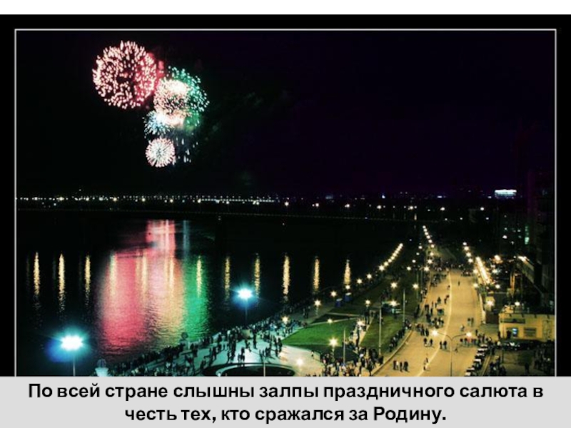 Слайд 14По всей стране слышны залпы праздничного салюта в честь тех, кто