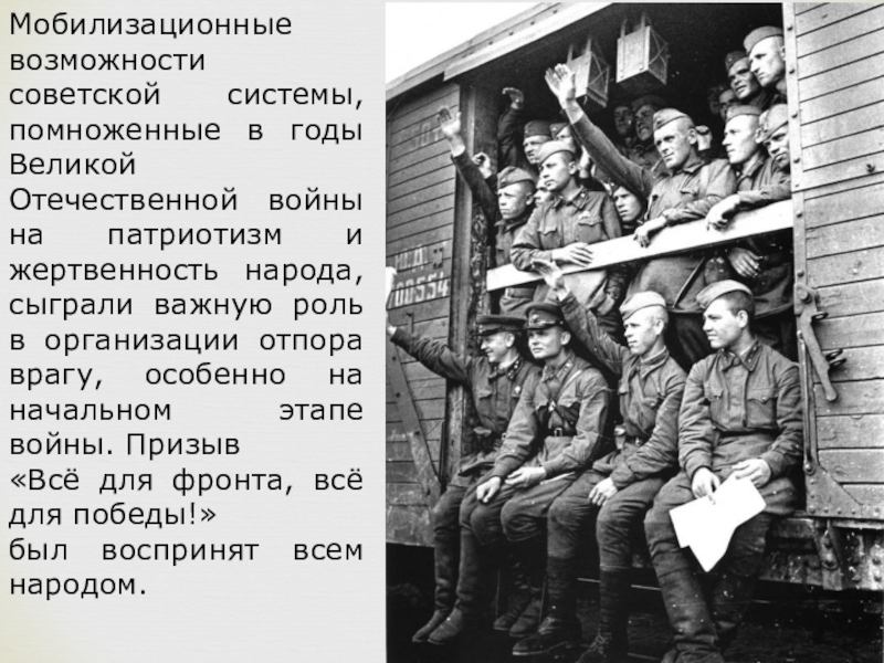 Слайд 7Мобилизационные возможности советской системы, помноженные в годы Великой Отечественной войны на