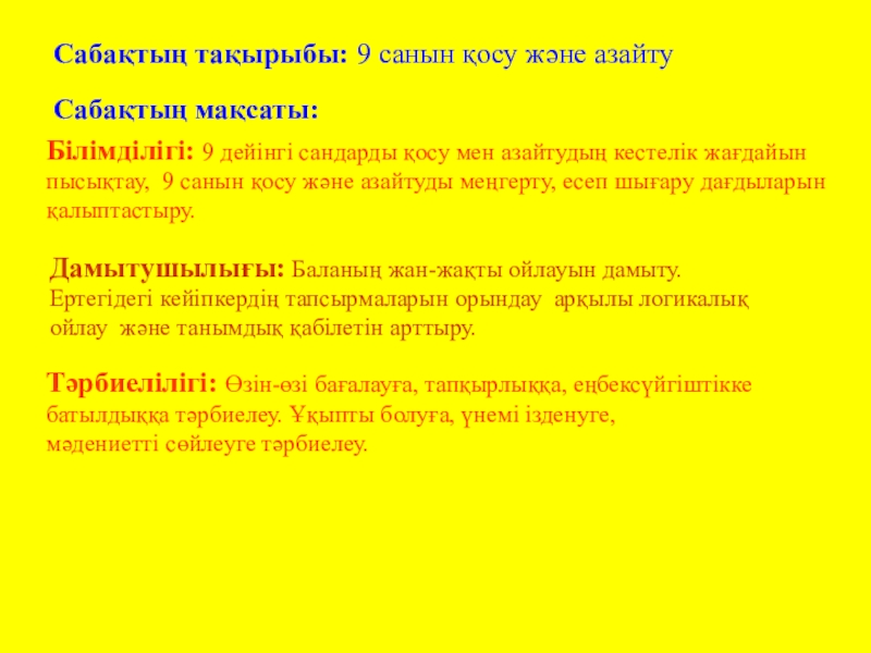 Тәрбиелілігі: Өзін-өзі бағалауға, тапқырлыққа, еңбексүйгіштікке