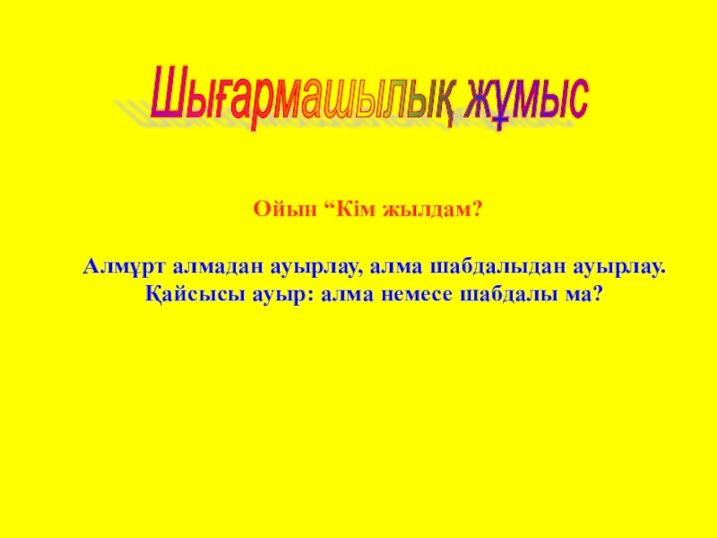 Дамытушылығы: Баланың жан-жақты ойлауын дамыту. Ертегідегі кейіпкердің тапсырмаларын орындау арқылы логикалық ойлау және танымдық қабілетін арттыру.