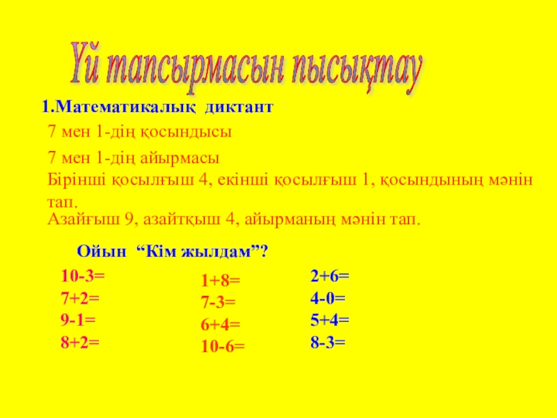 Азайғыш 9, азайтқыш 4, айырманың мәнін тап.