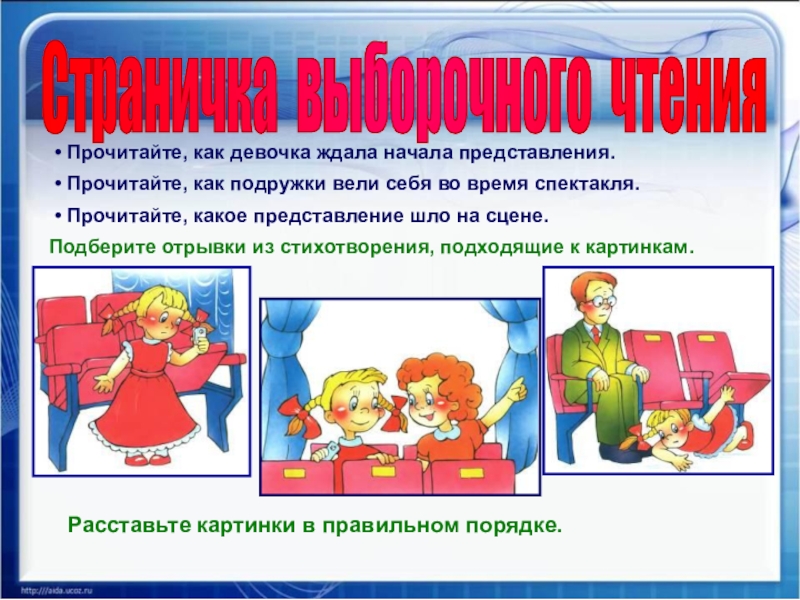 Подберите отрывки из стихотворения, подходящие к картинкам.