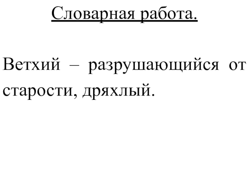 Словарная работа.Ветхий – разрушающийся от старости, дряхлый.