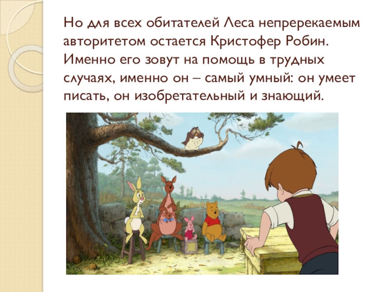 Плюшевый медведь Винни-Пух – воплощение оптимизма и хотя голова набита опилками, ему приходится много думать, он невероятно изобретателен.