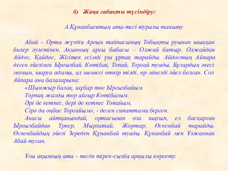 Жаңа сабақты меңгерту