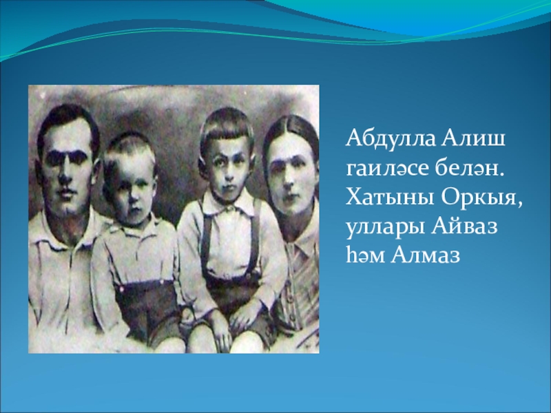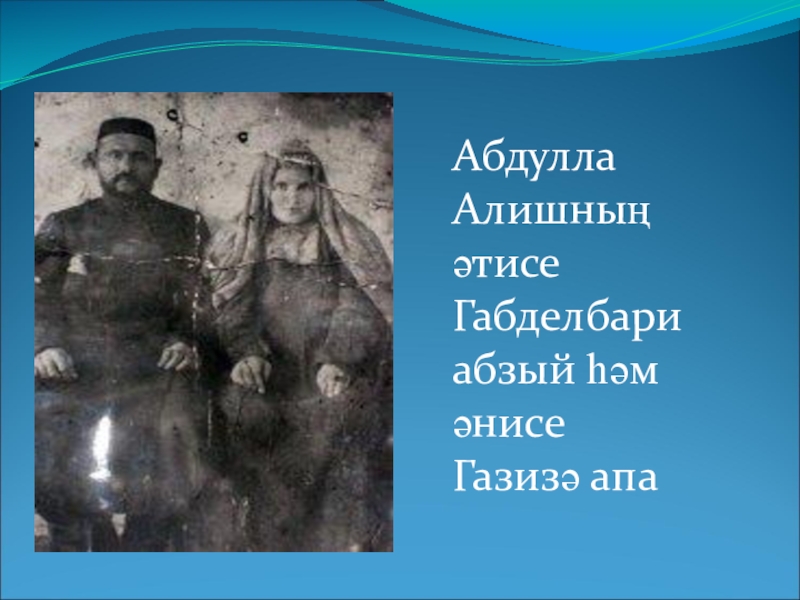 Слайд 2Абдулла Алишның әтисе Габделбари абзый һәм әнисе