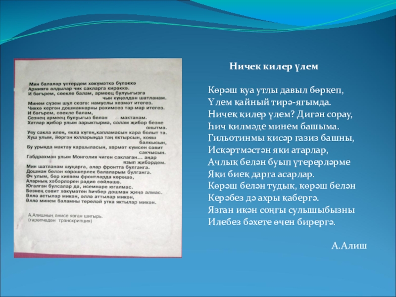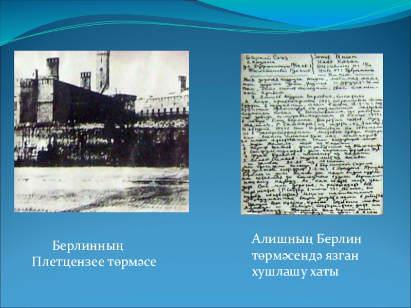 Слайд 12Алишның Берлин төрмәсендә язган хушлашу хаты