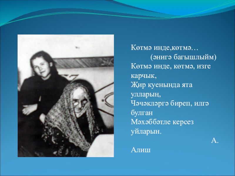 Көтмә инде,көтмә…     (әнигә багышлыйм)Көтмә инде, көтмә, изге карчык,  Җир куенында ята улларың,