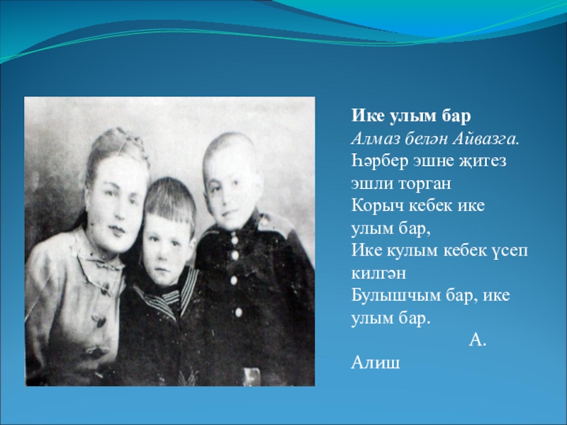 Шуышмасын дошман тирә-якта, Колакларым яхшы ишетә, Мин үлсәм дә, ике улым кала, Алар ишетер икесе ничек тә.