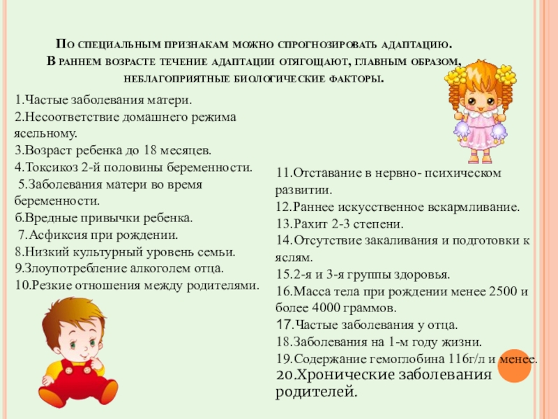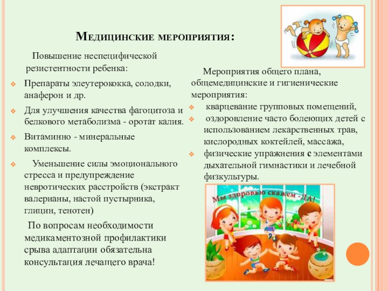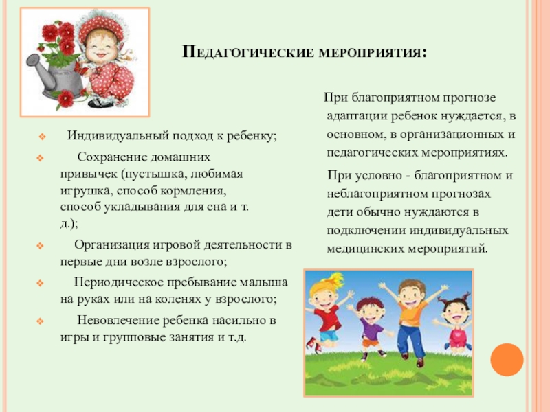 При условно - благоприятном и неблагоприятном прогнозах дети обычно нуждаются в подключении индивидуальных медицинских мероприятий.