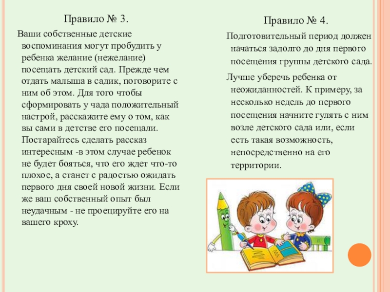 Подготовительный период должен начаться задолго до дня первого посещения группы детского сада.