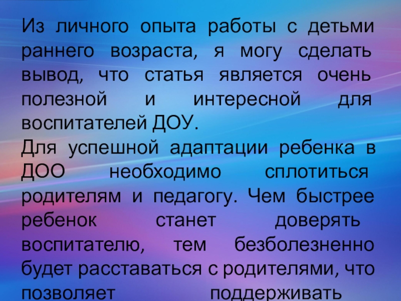 Слайд 7Из личного опыта работы с детьми раннего возраста, я могу сделать