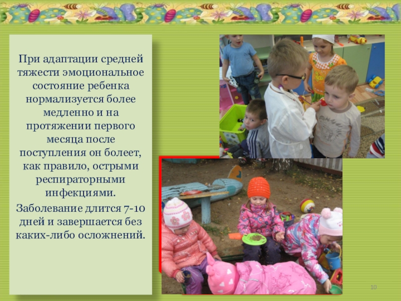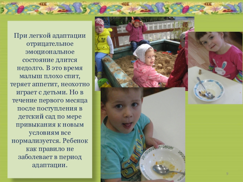 При адаптации средней тяжести эмоциональное состояние ребенка нормализуется более медленно и
