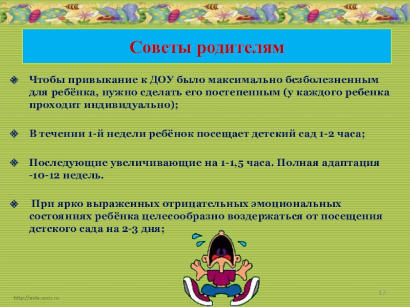 сделать его постепенным (у каждого ребенка проходит индивидуально);