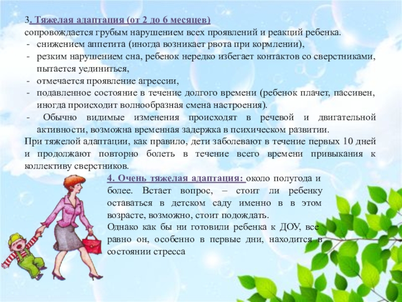 4. Очень тяжелая адаптация: около полугода и более. Встает вопрос, – стоит ли ребенку оставаться в детском саду именно в в этом возрасте, возможно, стоит подождать.