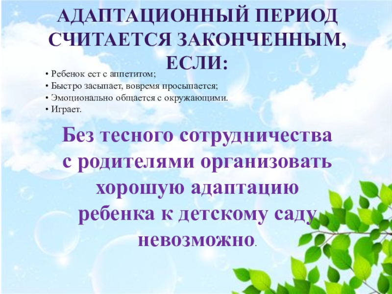 Без тесного сотрудничества с родителями организовать хорошую адаптацию ребенка к детскому саду невозможно.