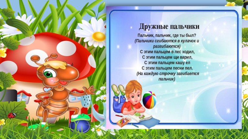 Влияние воздействия руки на мозг человека было известно еще до нашей эры. Специалисты восточной медицины утверждают, что игры с участием рук и пальцев приводят в гармоничное отношение тело и разум, поддерживая мозговые системы в отличном состоянии. Умелыми пальчики становятся не сразу. Поэтому игры, упражнения, пальчиковые разминки необходимо проводить ежедневно, в детском саду и дома, во дворе, во время выездов на природу.