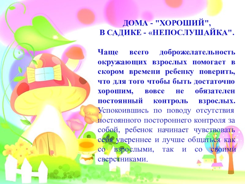 в садике ребенок часто видит именно то место, где его готовы воспринять таким, каким он себя ПОКАЖЕТ.