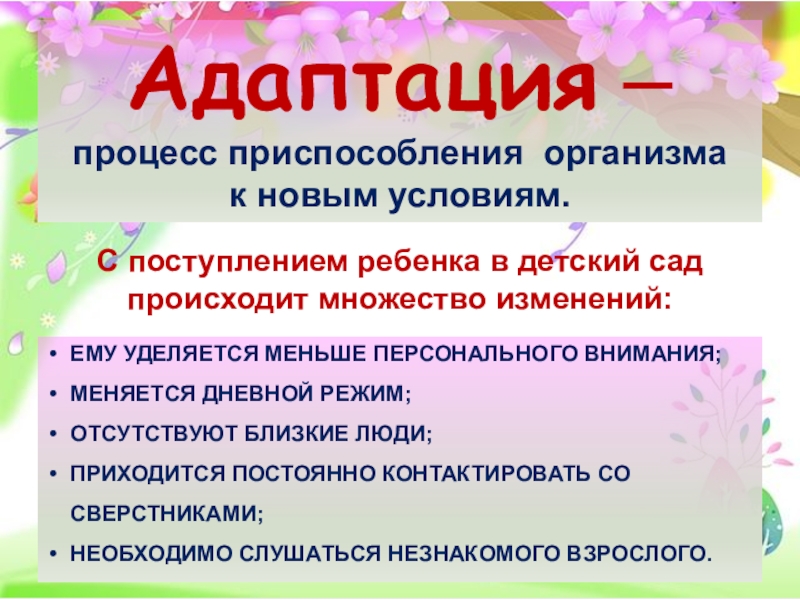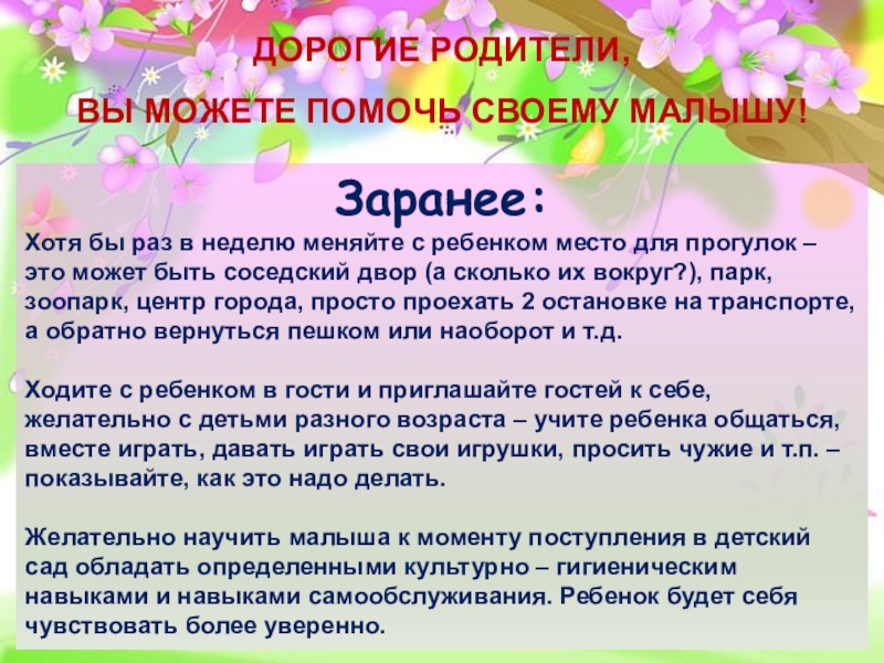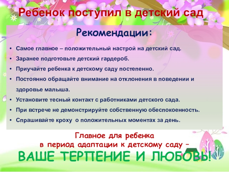 Нельзя пугать детским садом («Вот будешь себя плохо вести, опять в детский сад пойдешь!»).