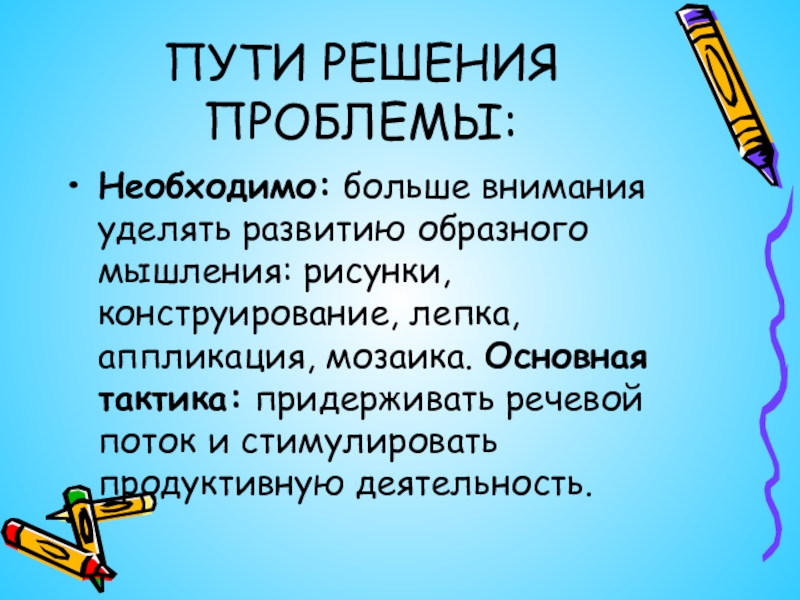 Необходимо: больше внимания уделять развитию образного мышления: рисунки, конструирование,