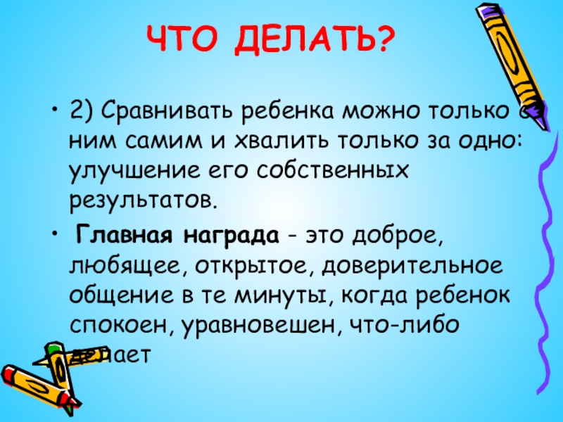 2) Сравнивать ребенка можно только с ним самим и хвалить