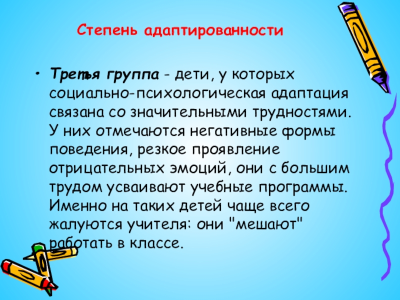 Третья группа - дети, у которых социально-психологическая адаптация связана со