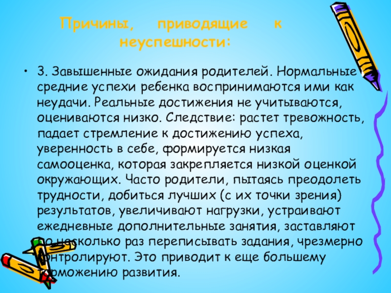 3. Завышенные ожидания родителей. Нормальные средние успехи ребенка