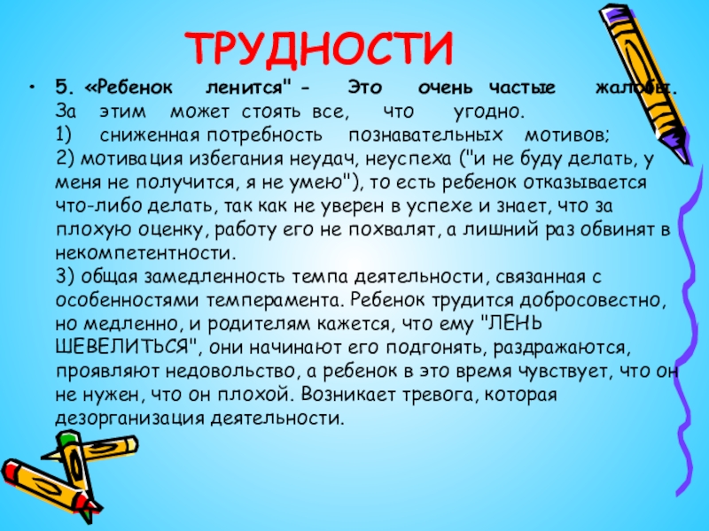 5. «Ребенок ленится" - Это очень частые жалобы.