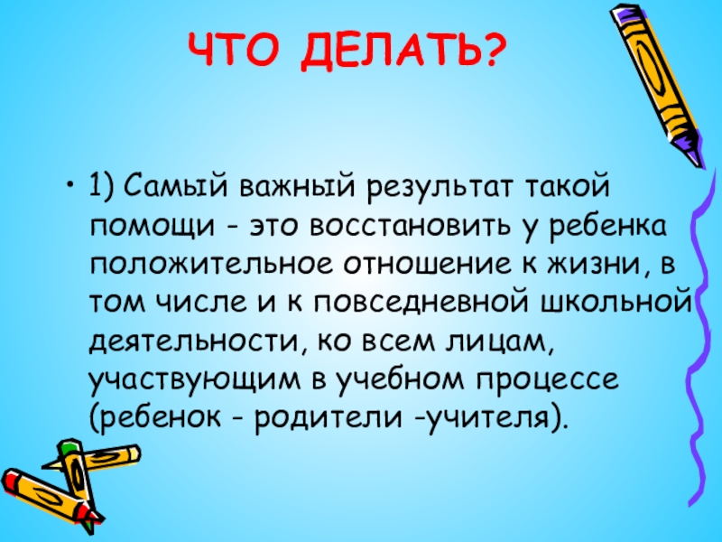 воспринимаются ими как неудачи. Реальные достижения не учитываются, оцениваются низко. Следствие: растет тревожность, падает стремление к достижению успеха, уверенность в себе, формируется низкая самооценка, которая закрепляется низкой оценкой окружающих. Часто родители, пытаясь преодолеть трудности, добиться лучших (с их точки зрения) результатов, увеличивают нагрузки, устраивают ежедневные дополнительные занятия, заставляют по несколько раз переписывать задания, чрезмерно контролируют. Это приводит к еще большему торможению развития.
