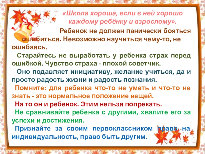 Оставьте за порогом школы ваши проблемы и плохое настроение.